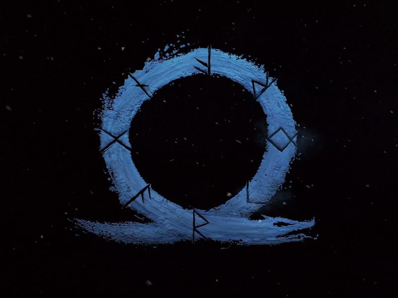Unfortunately, the teaser doesn't show any footage of the game itself, or our lead characters Kratos and Atreus. Instead, we hear the distinctive, deep-throated chorus that typified the 2018 game's soundtrack, as a blue omega symbol is painted across the screen in ice. It's spangled with Norse runes, which glow before being swept away by a gust of wind.