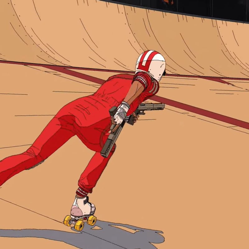 An annual competition that sees competitors master roller skating and sharpshooting is now the biggest entertainment spectacle in the world. You are Kara Hassan, a rookie player hoping to live through the competition. The story is light, but as you progress through each stage you will unravel the corporate conspiracies behind the event. But first, you have to make sure you progress.