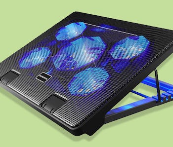 The TopMate laptop cooling pad is a budget-friendly option with two built-in fans to combat heat buildup. It plugs into one USB port but offers an additional USB port for plugging in other devices. Its metal mesh surface helps to dissipate heat more evenly, and a storage compartment gives you a place to store your USB cable when not in use.
