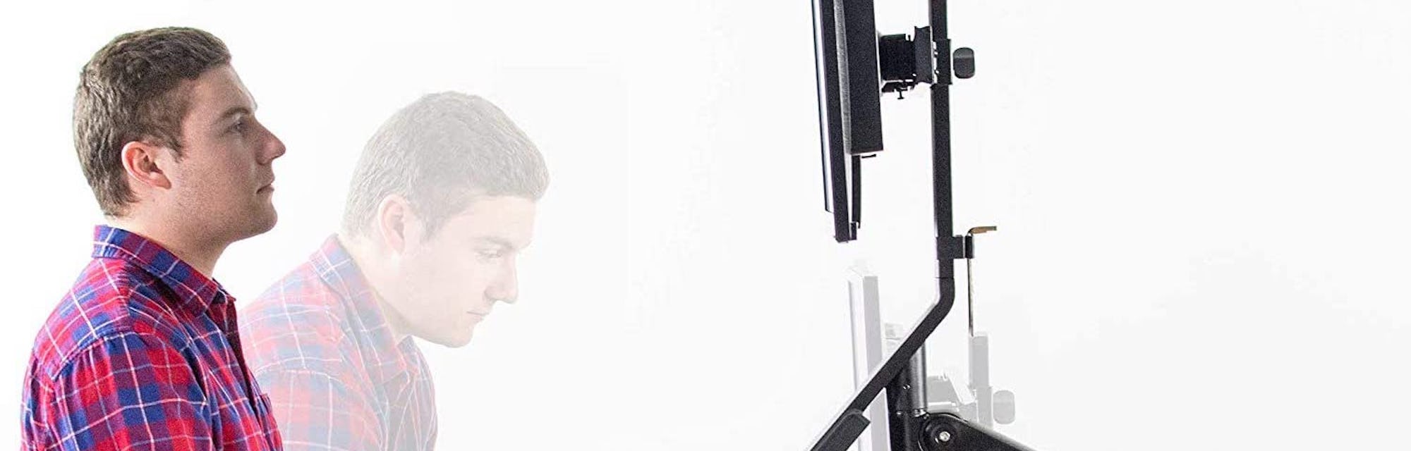 It rises easily from 5 to 20 inches tall, making it comfortable for people of various heights. It also moves smoothly and easily from the sitting position to standing, using a gas spring so you don't have to struggle or lift all that weight yourself. And it rises straight up so you don't have to move anything off your desk to make the shift to standing. At 32 inches wide, the work surface is roomy enough for your laptop and an extra monitor. Plus, its dark finish will surely match your decor.