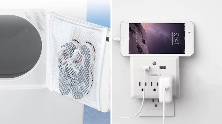 This is a next-level outlet extender. Plug it into an outlet and it'll turn one plug into three standard plugs along with two USB ports (and a night light, too). It also has a tiny shelf where you can set your phone or tablet while it's charging. Plus, the included night light will only come on when the room is dark.