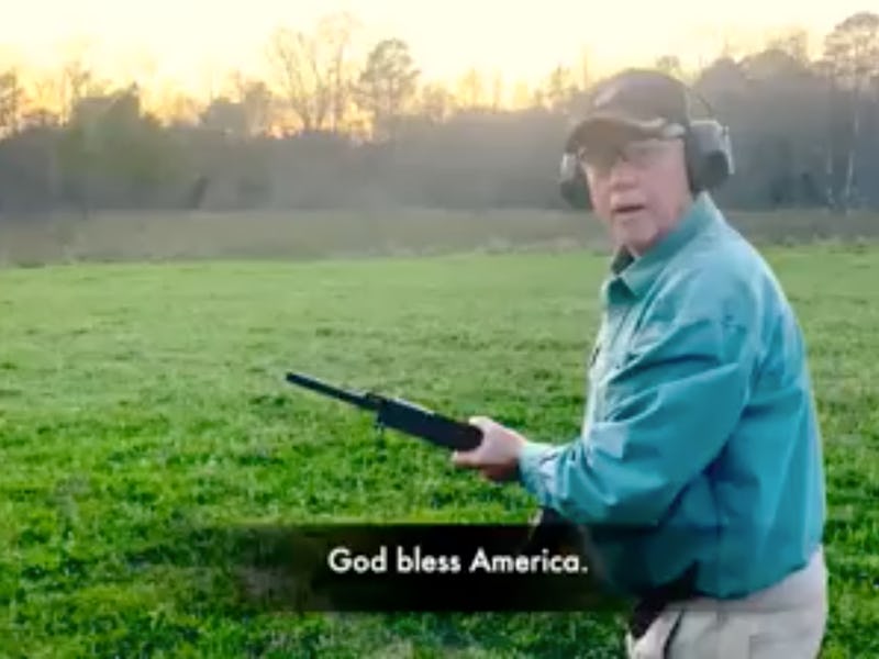 The minute-long ad stars — and was paid for by — Paul Broun, a Republican candidate for congress in the state of Georgia. In the ad, Broun wanders around a field shooting birds with an automatic rifle, waxing poetic about how it’s important to defend your property from “looting hordes from Atlanta” and the “tyrannical government from Washington.” To that effect, he states, he’s giving away a free AR-15, which he calls a “Liberty Machine.”