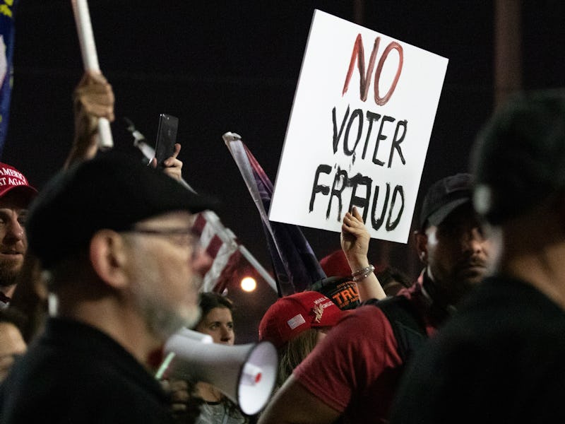 "Democrats are scheming to disenfranchise and nullify Republican votes," reads the group's About section, despite the easily verifiable fact that votes continue to be counted for both political parties. "It's up to us, the American People, to fight and to put a stop to it."