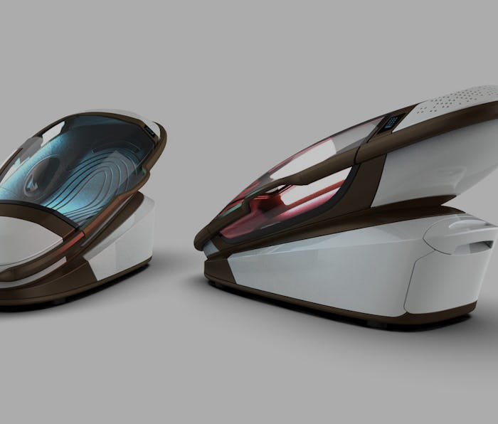 No, your eyes do not deceive you. That is most definitely a woman just chilling in a death chamber with her beloved dog. This raised a number of questions for us, namely: Does this thing euthanize pets, too? If so, is that woman wearing an O2 tank mask so she doesn’t also expire? Or, in keeping with the product’s name, is Sarco offering a transition to the afterlife for both you and your animals, a la ancient Egyptians?