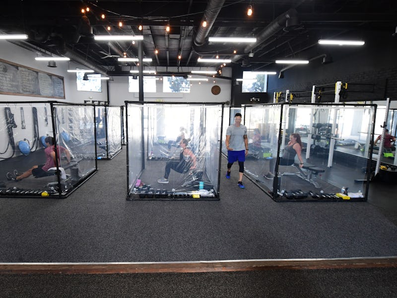Gyms are reopening and people are working out in weird isolation pods