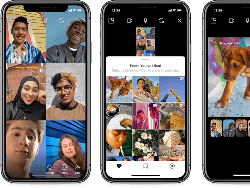It's simple: From your Direct messages inbox, you can start a video call with someone and then, with the quick tap of a photo icon button, together look at your liked or saved pictures and videos, as well as others that Instagram may recommend (kind of like the Explore Tab). It's worth noting that you won't be sharing your phone's screen completely, and you'll have to manually select the media you want to view with your friends, so there's nothing to worry about if you have some precious, secret pictures saved.