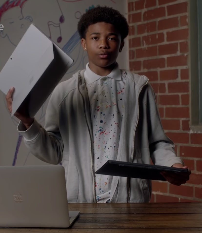 "Surface comes with a pen, and has a touchscreen," the kid also adds, which is also sorta stretching the truth a bit, since the commercial's fine print notes the Surface Pro Pen is "sold separately" at one point. But yes, Microsoft's alternative does include a touchscreen, which is something Apple fans have been begging the company to add to its laptops.