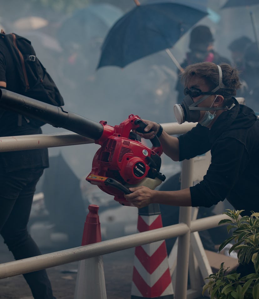 Right now there’s unrest all across the United States as people protest the murder of George Floyd at the hands of a racist Minneapolis police officer. Police are clashing with mostly peaceful protesters using rubber bullets, which weren’t designed to be shot directly at people from point-blank range, and tear gas, which is banned in warfare — but hey, what are standards when you've got a peaceful protest to squash, right? Luckily, we have our friends in Hong Kong to thank for a few lifehacks on how to deal with these “non-lethal” weapons used to violate our human and constitutional rights. Case-in-point: using a leaf blower to manage and mitigate the use of tear gas.