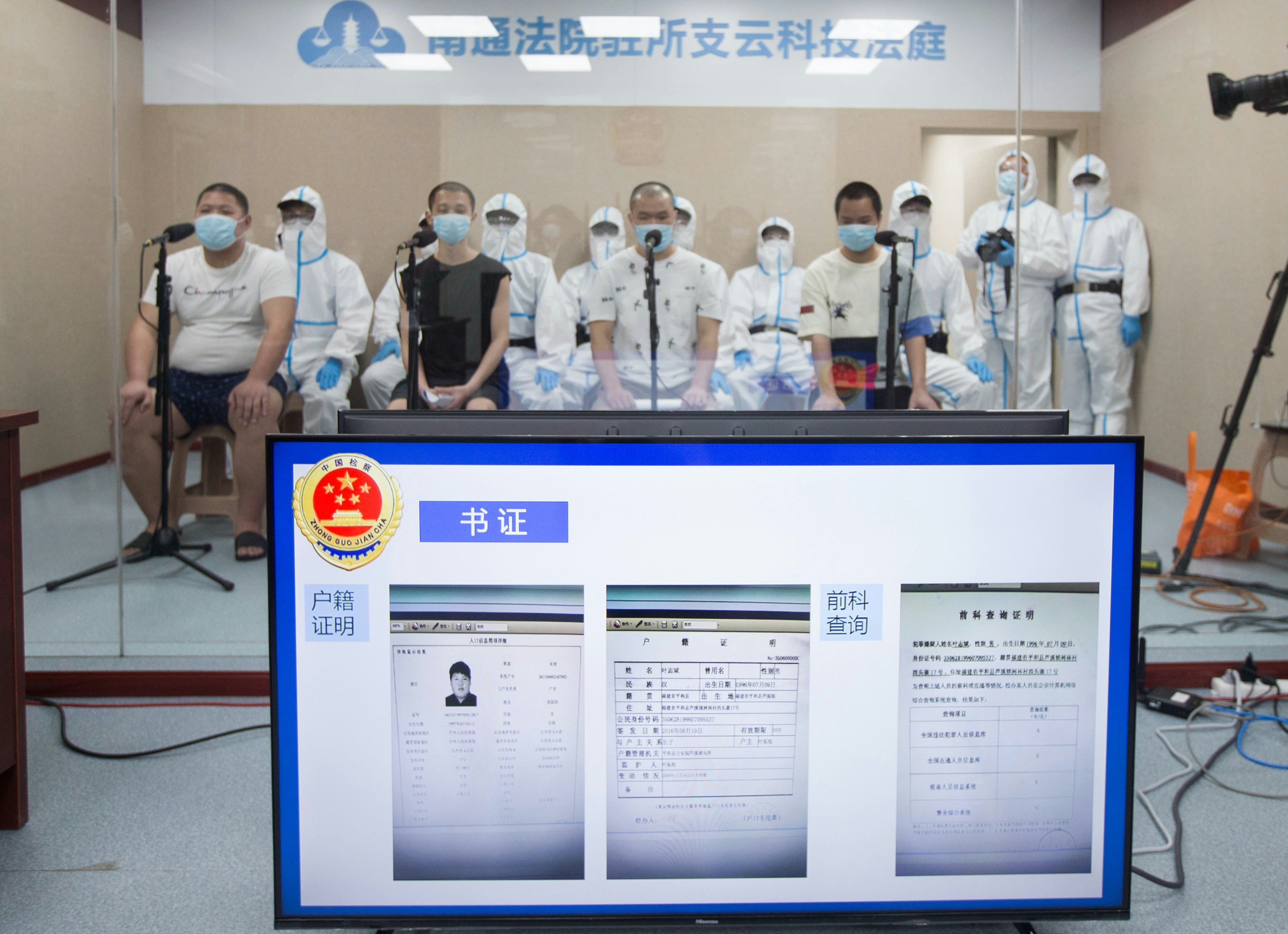 A court hears a fraud case of four defendants live in the "cloud technology court." Nantong, Jiangsu Province, China.