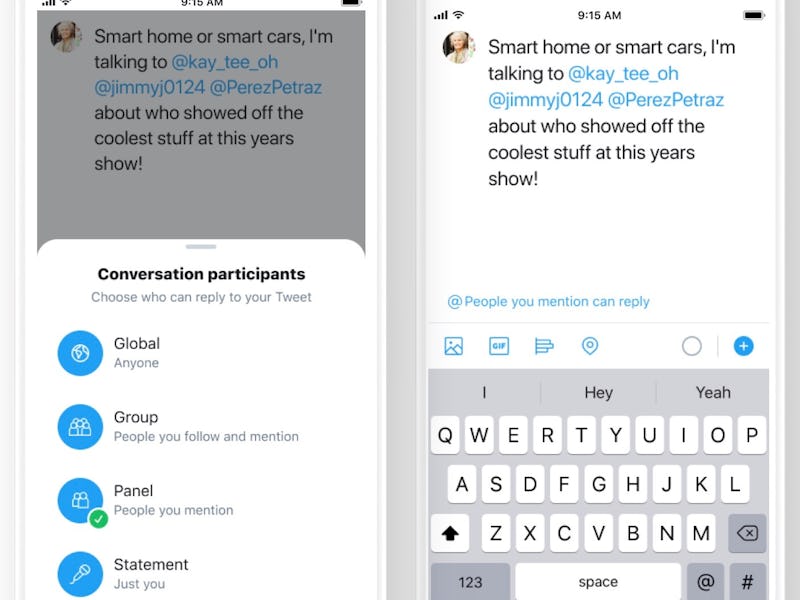 CES 2020 isn't only about fancy electric cars or cute robots from tech giants — social media companies are also trying to make a splash at the show. Today, Twitter announced that it will soon start letting people choose who can reply to them before they compose a tweet. This is part of a new feature called "Conversation Dynamics," which will give users more compose controls over who can interact with their tweets. Right now, you can hide who replies to your tweets after the fact, but Twitter says it wanted to do more ways to manage their interactions.