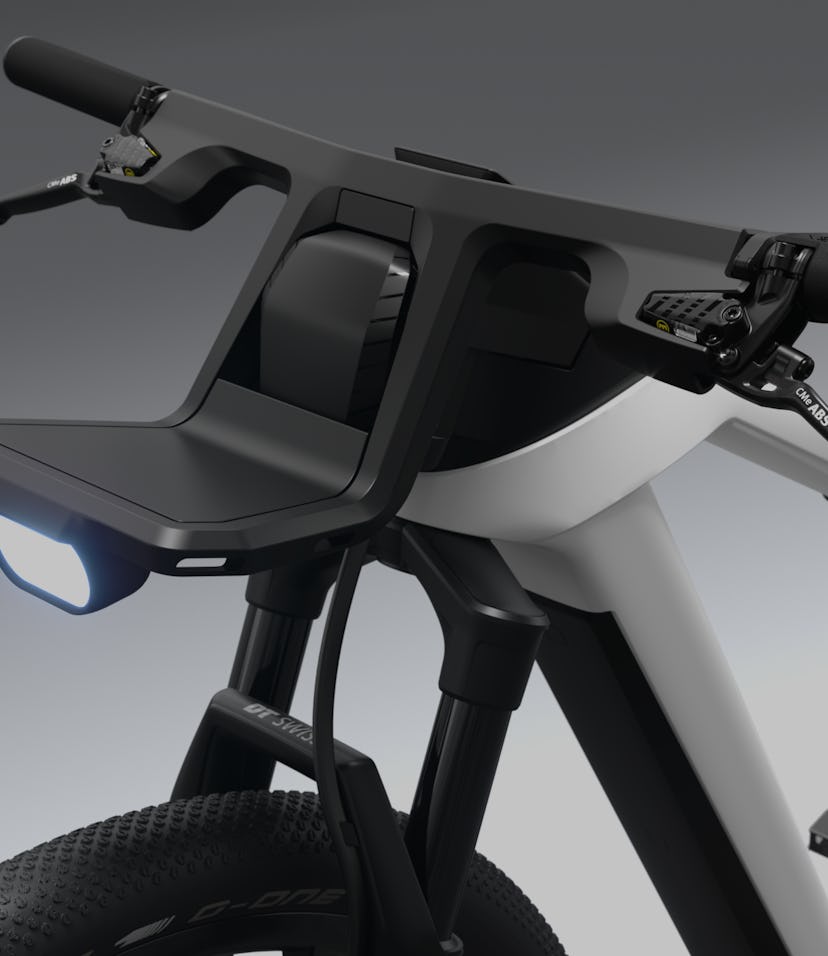 Bosch is also touting its Nyon onboard computer. Compared to what you typically get on an ebike, this thing is like going from Windows Mobile to an iPhone circa 2010. It can provide turn-by-turn directions, fitness data, and metrics about the remaining range in your battery. Normally the Nyon is a handlebar-mounted dingle, but here on the Concept Vision it's built into what Bosch calls the "fully integrated cockpit." How's that for aspirational?