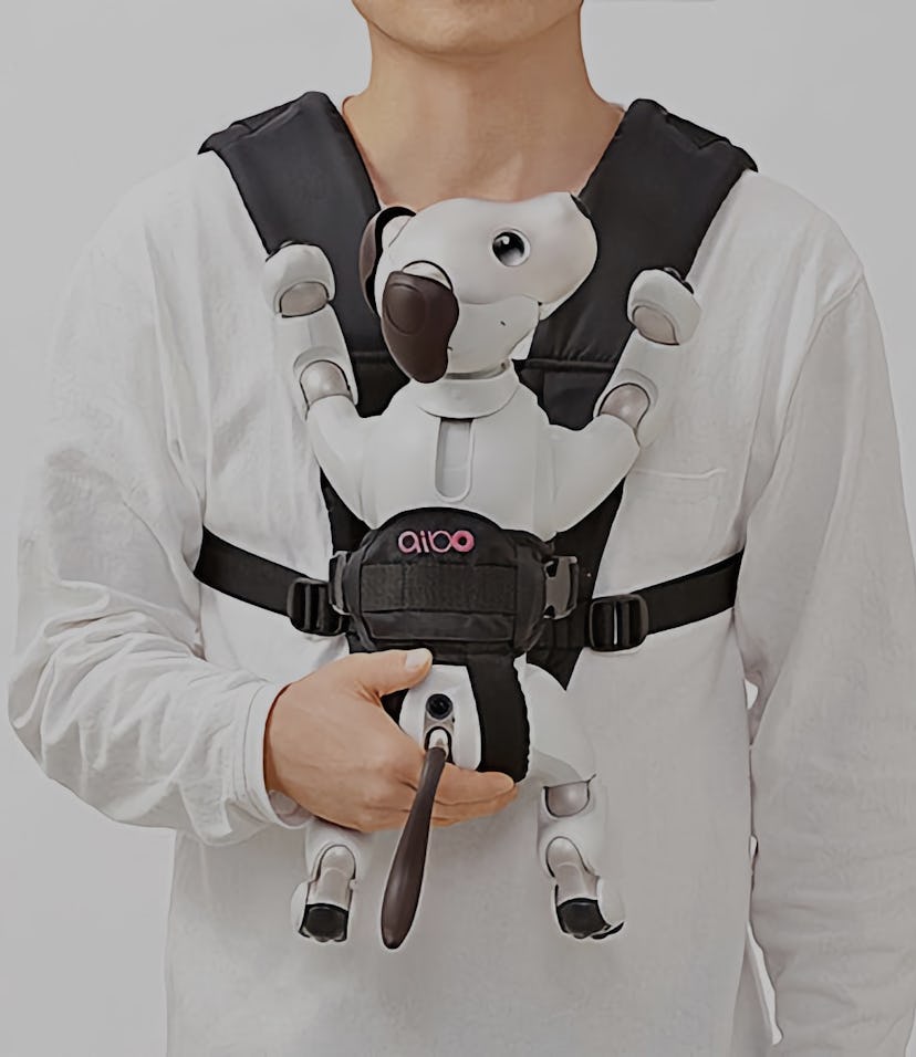 There are some of us who don’t want to deal with all the inconveniences of a real dog and would rather pay nearly $2,900 for Sony’s robotic alternative, Aibo. It’s not that weird to want a hassle-free robotic companion to fill that void in your life. But, it’s definitely at least a little weird to want to carry around your Aibo strapped to your chest.