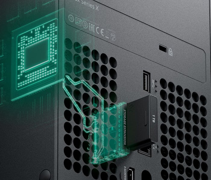 The expandable storage we’re seeing here is custom-tailored to the new Xbox consoles; it plugs into a dedicated slot and is optimized for playing games while they’re stored on it. Buying a traditional external hard drive won’t provide the same experience, but you can still copy games to and from your Xbox when you’ve run out of space.