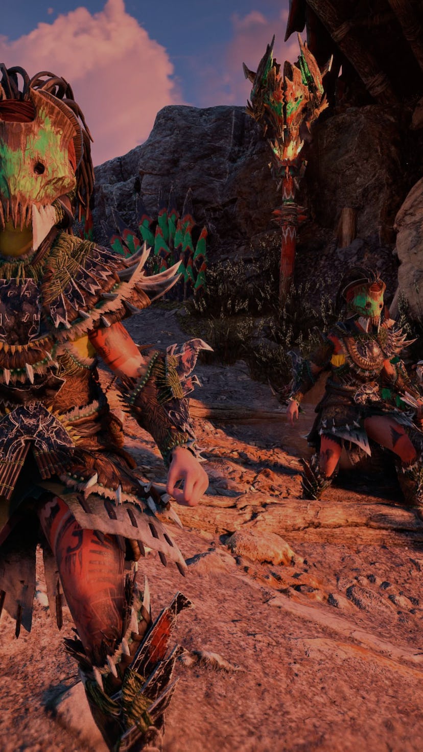From this shaky early footing, Forbidden West attempts to right itself by showing that the Tenakth (excepting Regalla’s forces) who Aloy encounters are not a shadowy, unknowable enemy but are, of course, ordinary people just like her. Though she follows the path of an old Western, making a dangerous journey into the “frontier” to better the lives of the entire continent (and world), Aloy is a 21st-century cowboy who doesn’t fall so easily into the kind of close-minded racism of the foolish Carja or the evil Regalla. She, as the savior figure in a modern action game, is enlightened enough to avoid reductive thinking.