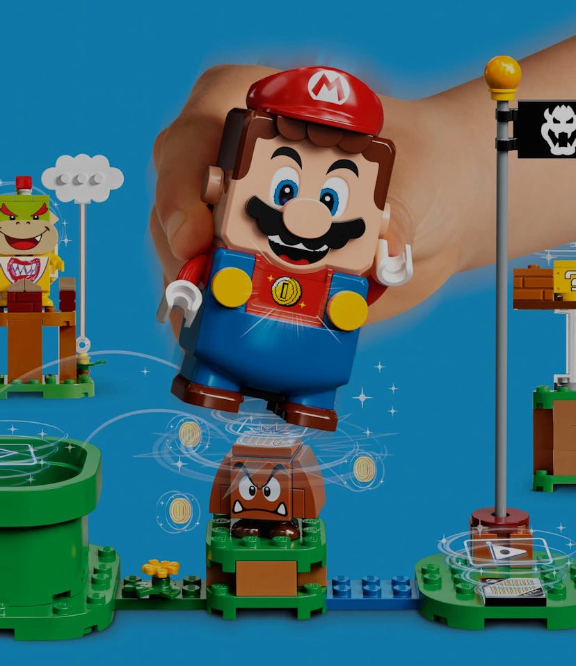 Touted as a new kind of playset, the LEGO Super Mario toys have an "interactive LEGO Mario figure who collects coins in real-life game levels created with LEGO bricks." While there's little technical information to go on, LEGO's video on the Mario set suggests people (LEGO's press release targets the playset at "kids" which offends me, TBH) will be able to make Mario-esque levels, complete with green pipes, bricks, and platforms, to land on. There are also Goombas and a Bowser Jr. (because you can't have a Mario level without some baddies).