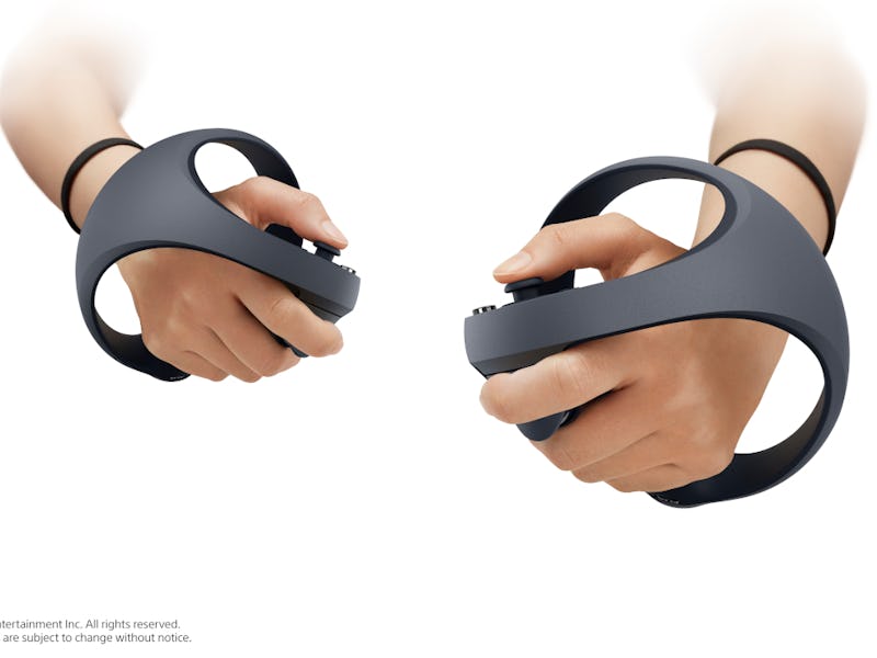 The main part of the controller — where your hands will actually rest — is a curvy column with a trigger, a joystick, and a few buttons. But there’s much more to this controller; that matte-grey column continues upward to wrap around each hand. The ergonomics on these should be lightyears away from what we’ve experienced with the current-gen PSVR Move controllers.