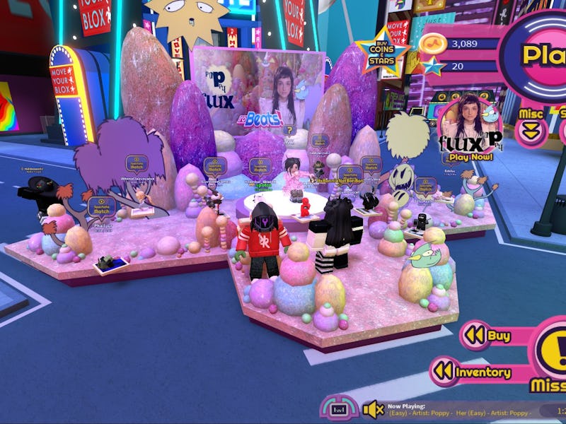 Popular video-game-slash-multiverse Roblox is introducing a new Listening Party feature, whereby artists can host release-day events for their legions of virtual fans. To celebrate the new feature, singer Poppy is “touring” various Roblox games to urge players to listen to her latest studio album, Flux, which releases today.