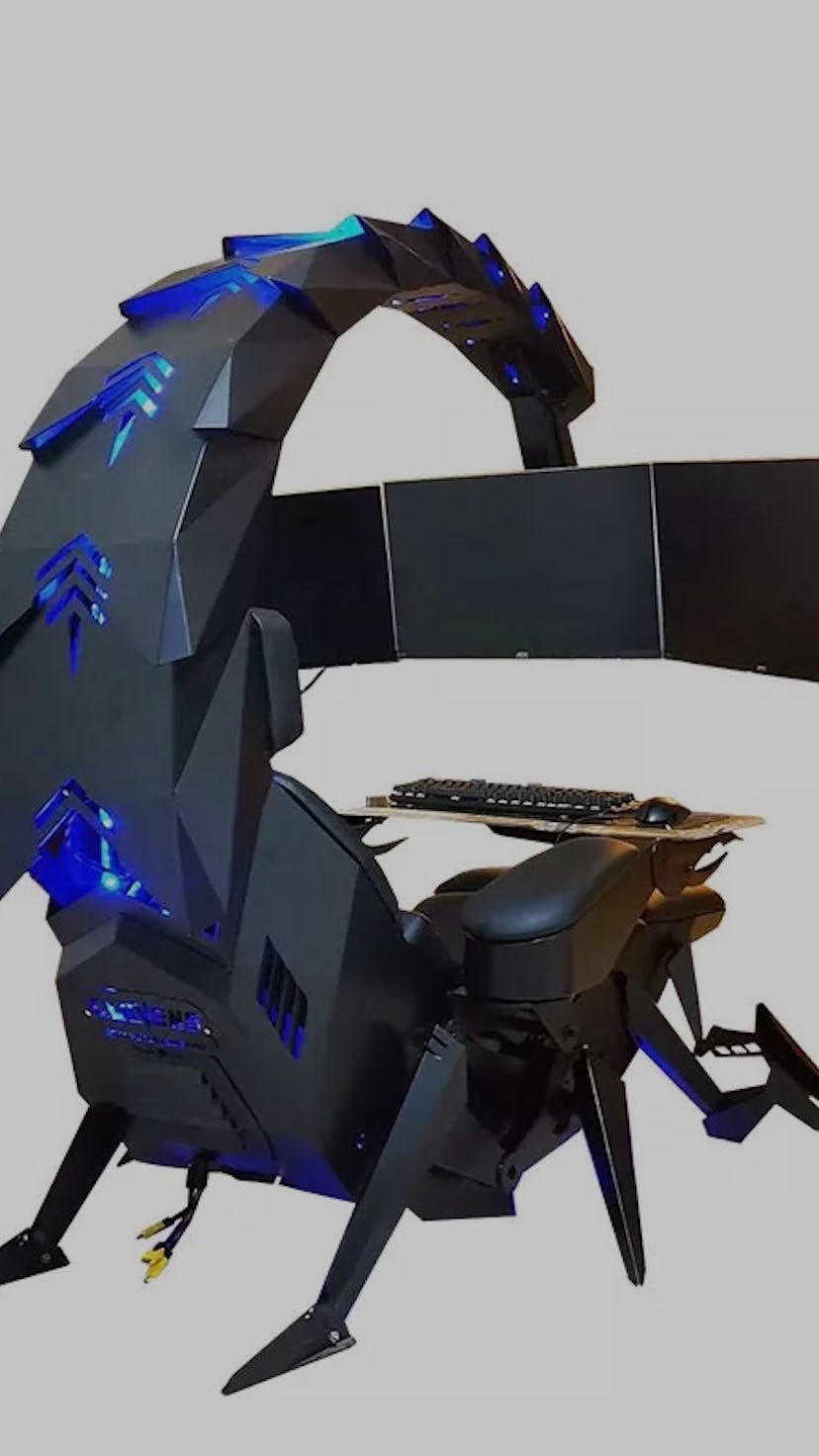 We're speaking, of course, about this very normal gaming rig made by a company called Cluvens. You may have noticed that the chair, if you want to call it that, is indeed modeled after the exoskeleton of a scorpion which by the company's own words, is an attempt at, "making [you] look like the ultimate villain."