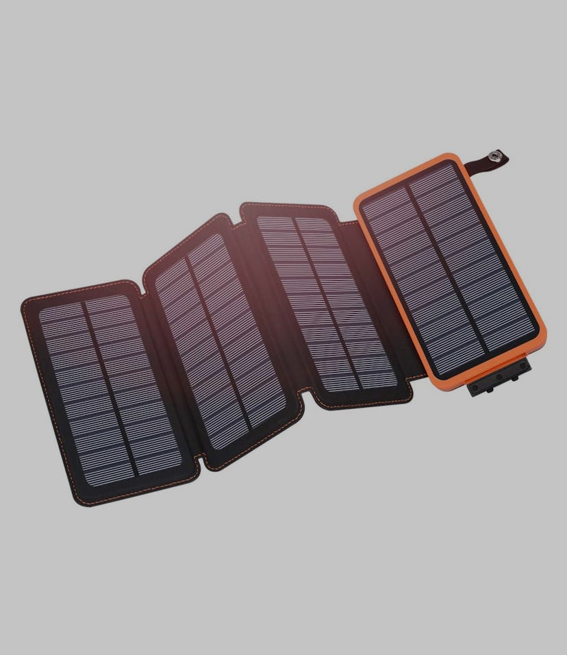 The Blavor QC 3.0 18W power bank is designed for the techy outdoorsman and comes with a built-in flashlight and compass. It weighs 22 ounces and is just slightly chunkier than an iPhone, but it can fully charge your phone around 7.5 times. Four solar panels fold out from the case to help you recharge the bank, and there's access to two USB ports, plus a USB-C and Micro-USB port.