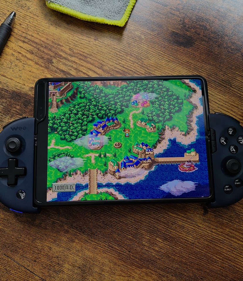 But all that is nothing compared to playing retro games on the Fold. I've written about my favorite Android game controller before, but when I slid my Fold into it (and it fits perfectly by the way), I knew something special was happening. The Fold's screen is roughly 4:3 (after you get past that gnarly notch), which is exactly perfect for retro gaming. When I I fired up Retroarch and started the SNES version of Chrono Trigger and it filled the entire screen, I was positively giddy. This looks hot.