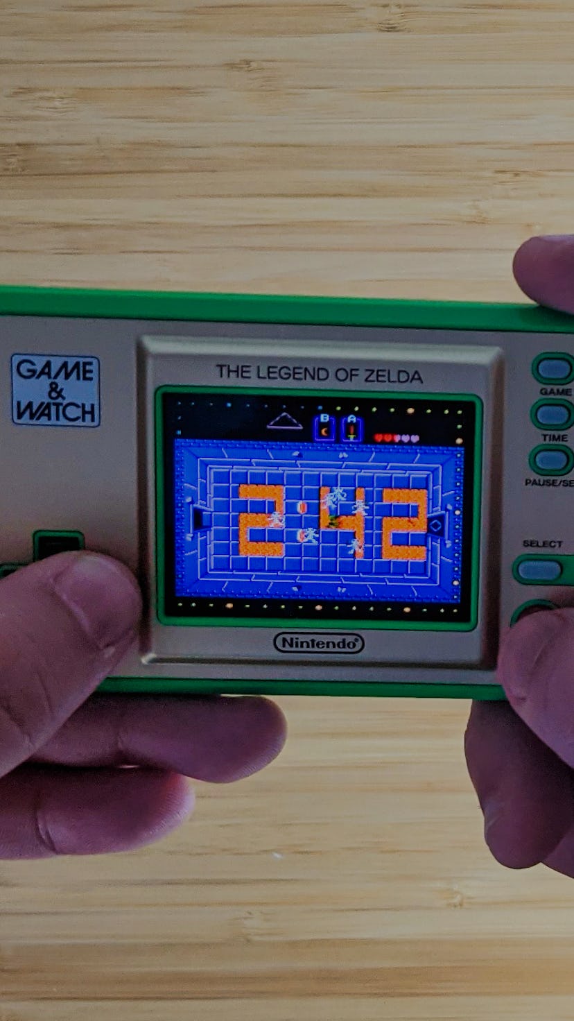 The hardware hasn’t changed from the Mario Game & Watch. If you’ve played with that one, the Zelda version handles the same. At 6.3 x 3.54 inches (0.86 inches thick), it slides easily into pockets. The 2.36-inch LCD is as sharp as ever and has generous viewing angles, which is important when the handheld is in time mode.