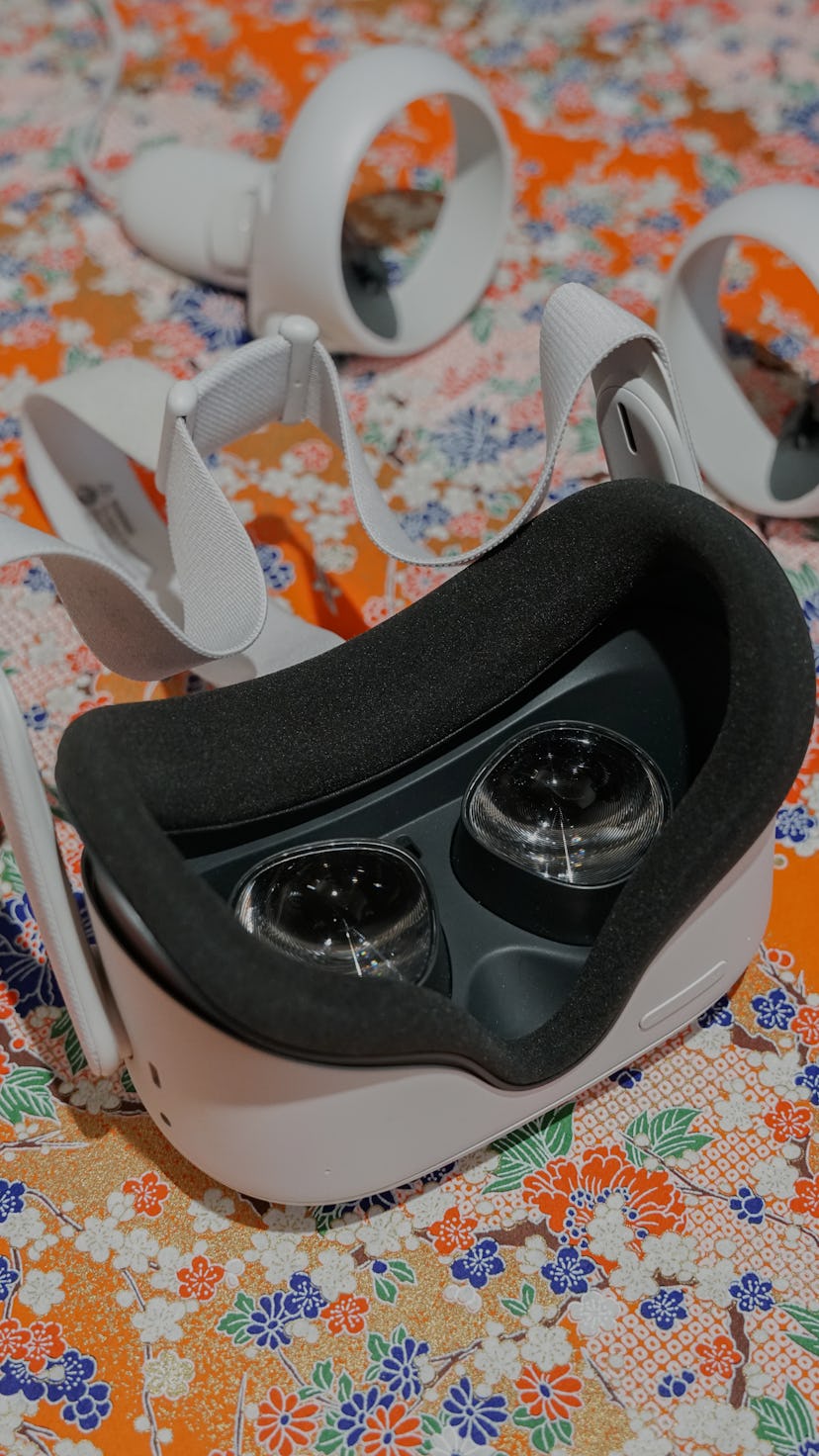 There’s no longer a mesh-like lining that covers the insides between the two lenses. The off-white color, while less intimidating than black, picks up dirt more easily. Also — and this is my least favorite downgrade — the foam padding where the headset presses against your face is not made of breathable fabric like on the Quest. Instead, the foam feels more like the inserts you use to seal a window unit A/C; I don’t think these will hold up as nicely over time.