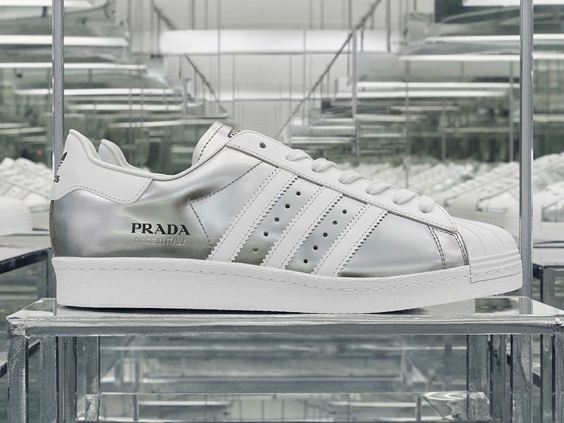 Each of the full-grain leather sneakers was handmade by Prada in its Montegranaro, Italy factory, elevating them from the $80 Superstar Adidas typically produces. The process involved 100 different steps by 100 different Prada employees, according to a Highsnobiety story explaining why Prada Superstars are worth the $525 price tag. Broken down further, the sneakers were cut, lasted, glued, polished, and then packaged by hand — each step of which involved 20 microstops.