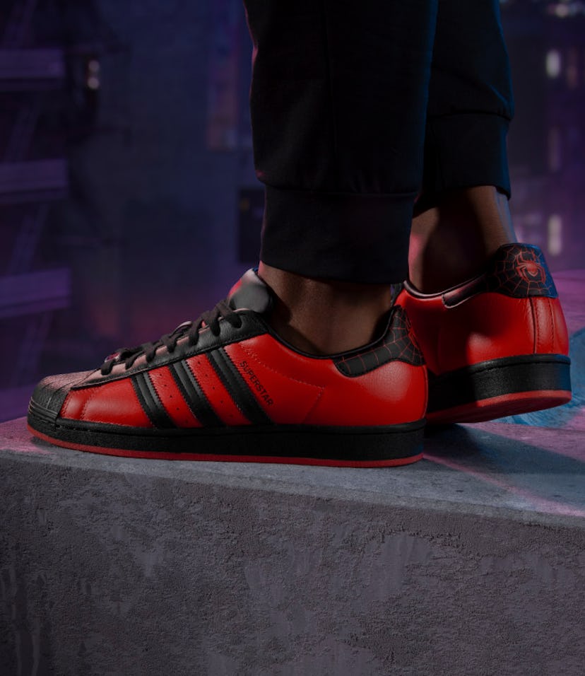 Your spidey senses are tingling. While you may not be able to swing around your city like Miles Morales can, you can at least look the part with the latest sneaker drop from Adidas. To mark the release of Spider Man: Miles Morales for the PlayStation 5 (and 4), Adidas has designed a special edition of its classic Superstar shoe in real life and in the game. This marks the first time Marvel has worked with Adidas, alongside Insomniac Games and Sony PlayStation.