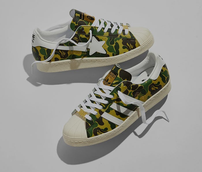 No price has been announced either, but given the last two pairs retailed at $360, consumers should expect a similar price. While Superstars usually retail around $85, BAPE’s Bapesta sneakers sell for $279 — and cost even more once put on the resale market. Considering the same value might apply to BAPE and Adidas’ collaborative Superstar, it’s worth copping at retail price instead of hoping for an after-market deal. After all, the classic “Green Camo” pair will most likely be the most coveted sneaker out of the Superstar collection.