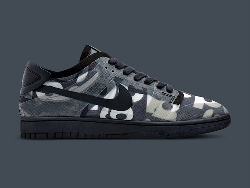 In this case, the treatment is inspired by the streets of Tokyo, a city that's been crucial to the Dunk's stature. It also carries over clear embellishments from the CdG Dunk High — this time in the form of Nexkin, a translucent stretch-woven fabric that envelops the upper and has previously been seen on Nike's Vaporfly SP and React Element 87. This gives the sneakers the strong sense of texture that Kawakubo has become known for in the 40-plus years since founding Comme des Garçons.
