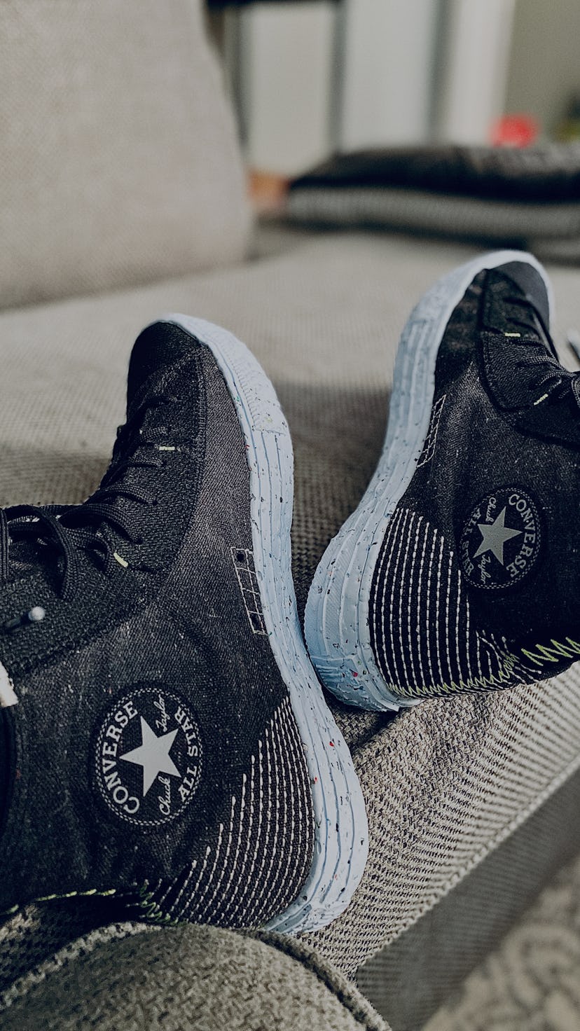 The sustainable materials used give these Chuck Taylors a fresh look, thanks to that Crater Foam midsole and the added stitching accents around the heel, ankle, and lacing areas — all while keeping the essence of the 100-year-old shoe. They're comfortable, too: As soon as I unboxed them, I noticed how lightweight they are and the canvas-like recycled upper makes it easy to get the sneakers on and off. Think of it as wearing a high-top slipper, meaning you wouldn't have trouble walking around in these all day long.