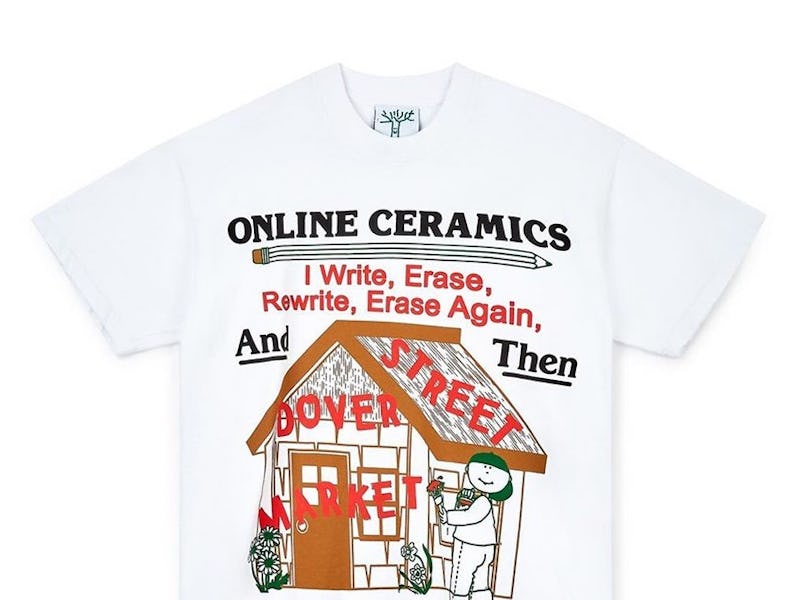 The Fearless Initiative — The T-shirt capsule has been dubbed The Fearless Initiative and gave each brand the prompt of creating something that inspires hope and optimism. Online Ceramics' T-shirt, pictured up top, shows a scene familiar to many of us who've lived through lockdown. It shows a cheery character working on her home with the Japanese poem, "I write, erase, rewrite, erase again, and then a poppy blooms."