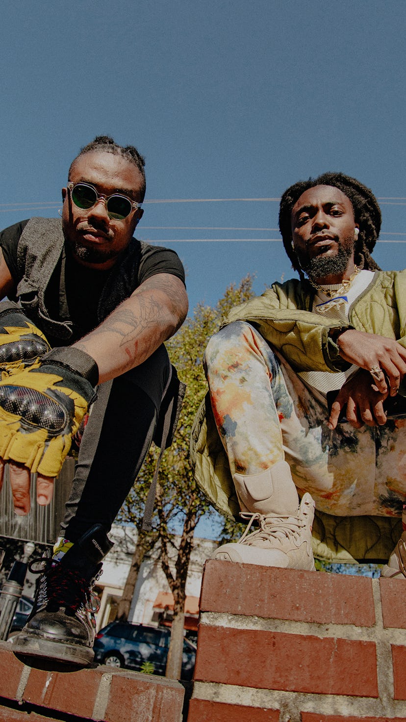 EarthGang has been sending out its own special blend of sonic waves since the hip-hop duo was in tenth grade together — though their shared affinity for innovative, overlapping genres began even earlier. Growing up in Atlanta, WowGr8 (aka Doctur Dot, née Eian Undrai Parker) and Olu (née Olu O. Fann) were surrounded by a community of musical artists. Hangouts at a friend’s studio evolved into local shows on the indie circuit, and “the synergy started from there,” says Olu. Once graduation came, “We thought, ‘Let's actually give it a shot.’” With a fresh Grammy nomination under their belt (best R&B song for “Collide” with Tiana Major9) and a new EarthGang album on the way, that shot has reached otherworldly levels.
