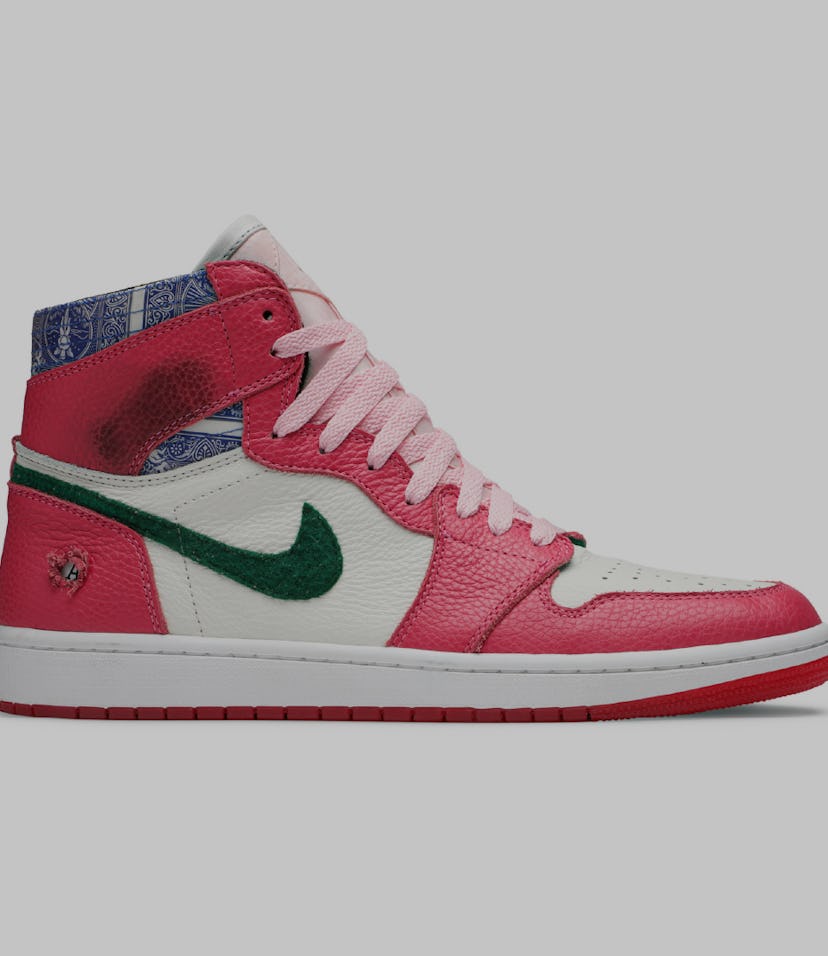 Vibes on all five — As far as the sneakers go, the Shoe Surgeon definitely didn't hold back when bringing Jordan's movie-theme vision to life, including on two pairs of... well, what else but Air Jordans, the iconic signature shoes from the Michael Jordan without a "B" in his name. Custom sneakers can often be over-the-top and outright cringe, but thankfully these five silhouettes from the MBJ and the Shoe Surgeon are stunning and just the right amount of fun. The best pairs are, without a doubt, the "Casino" AJ1 and "Coming to America" AJ4 (pictured above and below, respectively) — not only because those are classic Jordan models, but the materials and details paying homage to the films that inspired them are subtle, loud, and impeccable all the same time.