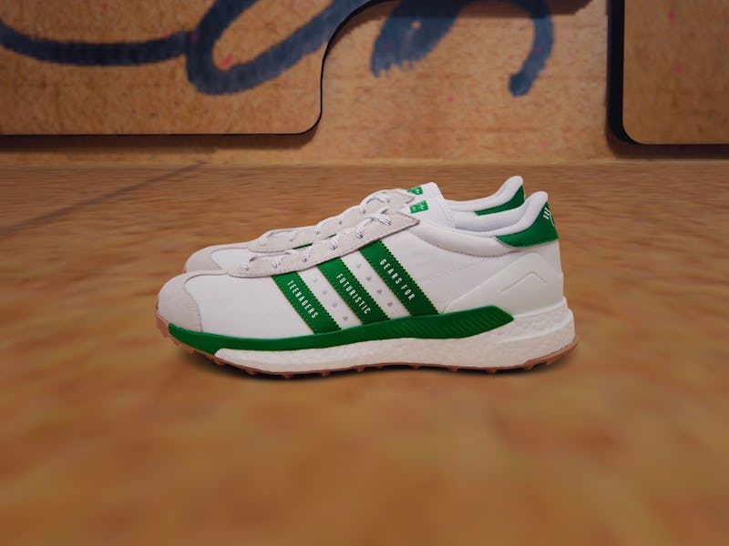 The Country, which dates back to 1970 and has been upgraded with Boost cushioning, will come in the same three color schemes as the Forum Low. It has serious notes of the Pro Model, the plain to a fault but super reliable basketball sneaker, and spells out Human Made’s mantra across the three stripes. As far as dad shoes go, you can’t get much better than this collaborative Country.