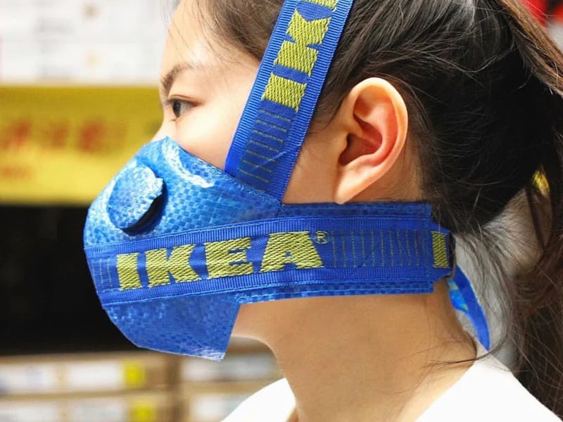Try it with an Ikea bag — As long as you've got the fabric, the possibilities for your own masks are endless. One option is repurposing Ikea's iconic Frakta tote bag, as Wang did for a 2017 piece that's once again making the rounds. It's significantly less unwieldy than wearing a whole ass shoe on your face and is also way easier to construct. Along with the pattern, he's also uploaded a YouTube video to help guide anyone who wants to take on the craft.