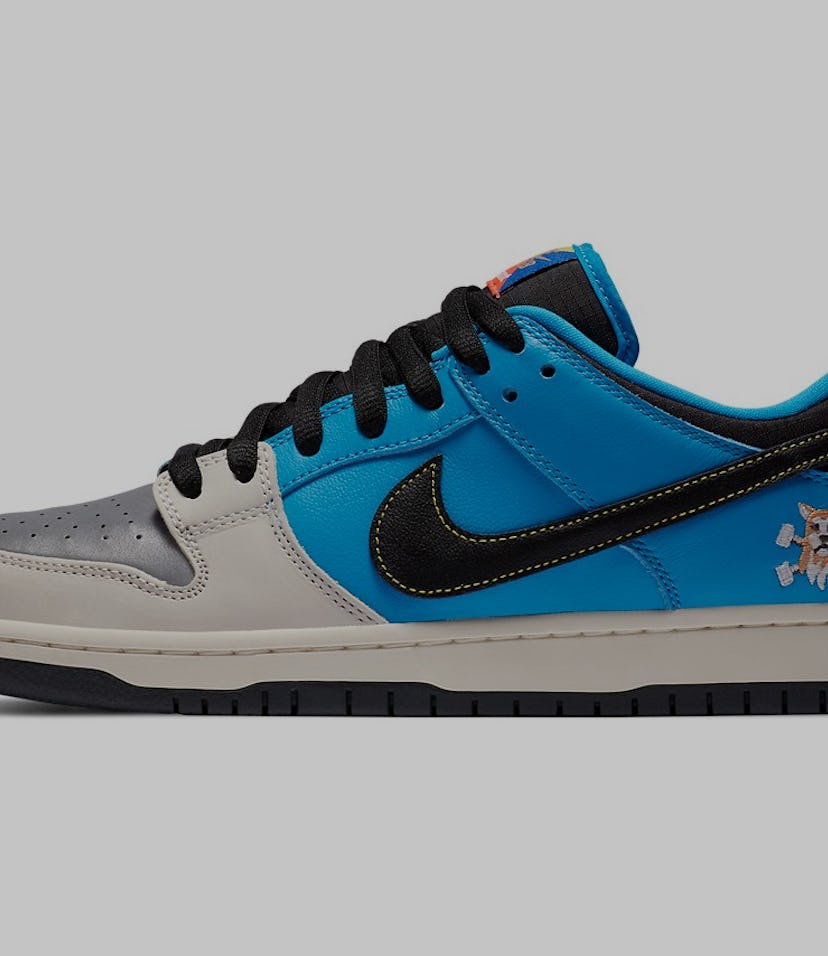 We've talked at length about how 2020 is the year of the SB Dunk, and Nike's going to continue that trend with another pair that's surely going to make sneakerheads' jaws drop to the floor. This new collaboration with Instant Skateboards, a Japanese skate shop that's celebrating its 25th anniversary, comes in the form of colorful style that brings flashy details to a classic silhouette. The SB Dunk Low "Instant Skateboards," as the shoe is appropriately dubbed, features a blue-and-black combo that's complemented by a silver, reflective upper with a tiny Swoosh logo. That means whenever you photograph it with a camera flash, you'll instantly make that part of the sneaker shine.