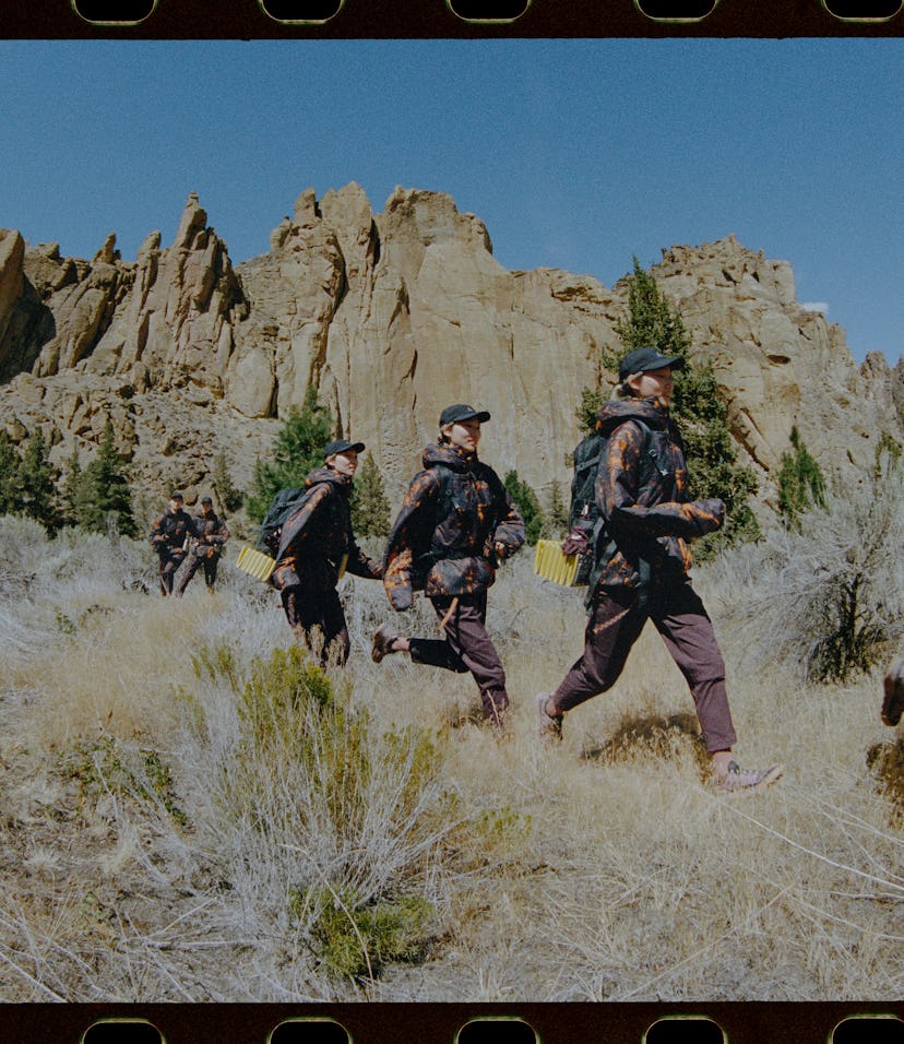 From both a design and naming standpoint, most appealing is the Rope De Dope, an insulated and packable puffer jacket with a lava-like pattern channeling Smith Rock's volcanic origins. Meanwhile, a Polartec Wolf Tree hoodie makes use of 100-percent recycled fleece and comes in a Timberland-like wheat.