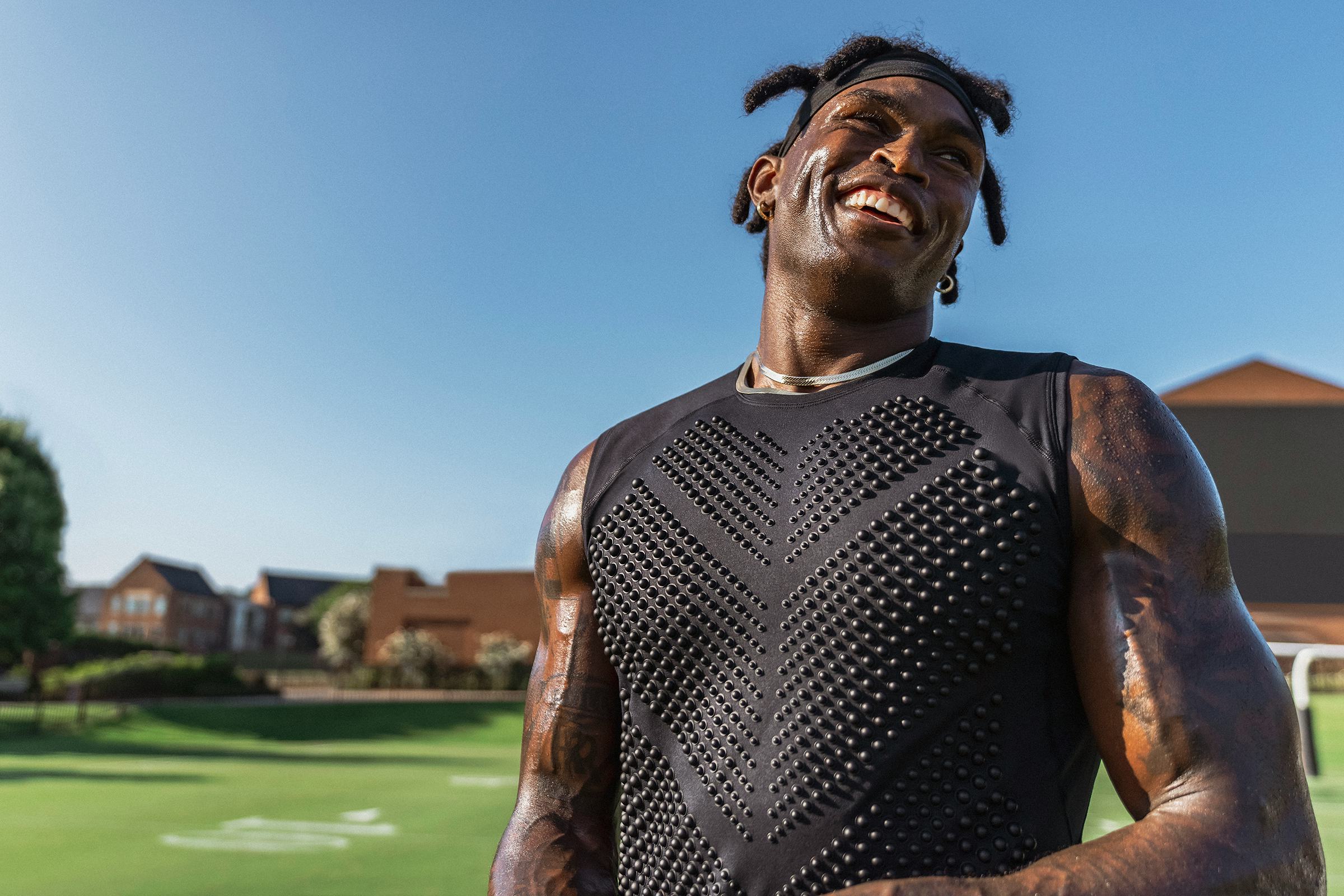 Annie Kunz is an Olympic heptathlon athlete from the United States and is one of Omorpho’s ambassadors along with NFL wide receiver Julio Jones, BMX rider Matthias Dandois, and pro tennis player Ajla Tomljanović. Kunz began training in the Gravity apparel this fall and said she’s received plenty of attention whenever she’s worn it. But more crucially, it’s been a boost for her workouts, and one she intends to take advantage of going forward.