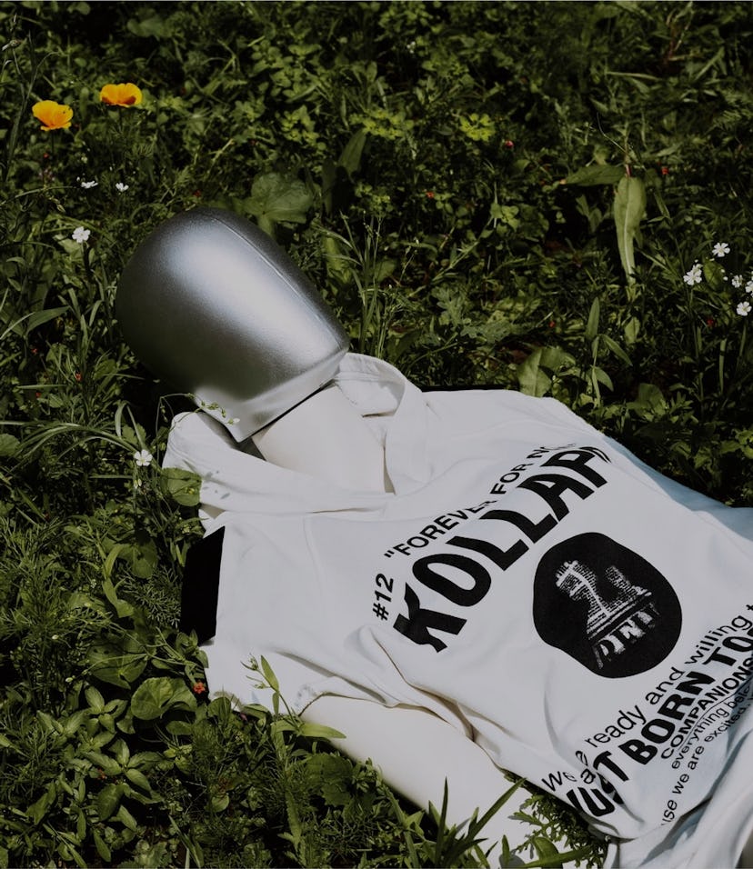 Confirmed pieces — Among the lineup will be pieces from Simons' first collection in 1995, the red shirts and slim ties from the 1998 "Radioactivity" show, and the Kollaps hoodies (up top) from 2002's long-winded but still relevantly titled "Woe Onto Those Who Spit on the Fear Generation... The Wind Will Blow It Back" collection.