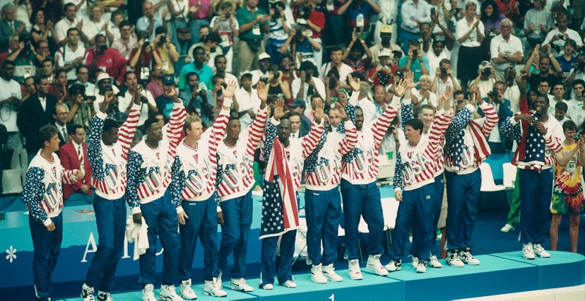 Not famous, but infamous — The 1992 Olympic Dream Team was outfitted by Reebok, which the hyper-competitive Jordan couldn't oblige. He would have refused to wear a competitor's apparel, but the team was told anyone who didn't wear the track pants and jacket wouldn't be able to participate in the medal ceremony. Never one to back down, Jordan still found a way to say "fuck you" to Reebok by covering the company's logo with an American flag draped over his shoulders. Because who could criticize the overt patriotism of rocking the ole Stars and Stripes.