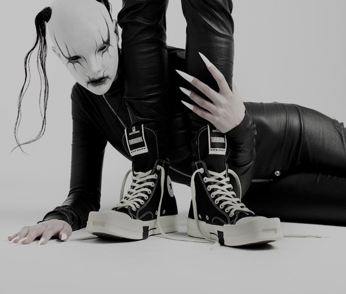 Now, after months of silence from the collaborators, the buzz is back. In line with Owens’ punk aesthetic, a new campaign for the Converse sneaker sees it modeled with leather suits and alienesque models from multi-disciplinary brand Fecal Matter. More notably, the designer’s DRKSHDW x Converse Chuck 70 “TURBODRK” has committed to a launch date that happens to be in just a matter of days.