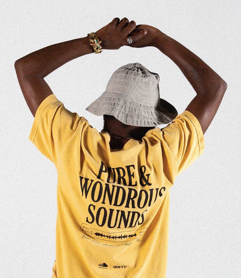 From zoning out while listening to a playlist to serving a look while outdoor dining, they provide mechanisms to feel, heal, and cope. Offering a portal to an inventive future is the D.C.-based independent broadcast company, GRVTY. Known for experimental videos, musically driven, and socially conscious apparel, the brand has teamed up with SoundCloud to launch the streaming giant’s debut fashion collection — one that's designed to support emerging artists and underground designers.
