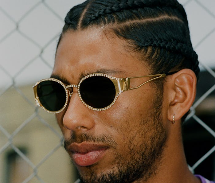 Supreme peacocks — Just as Noah keeps it characteristically mature, Supreme goes with the level of boisterousness you've come to expect. Loudest of all are the Miller frames, pictured up top, which are set with jewels in black, gold, and silver. The other two offerings, Royce (below left) and Stretch (below right), are rectangular frames —the latter of which channels the early 2000s, especially with the two reflective lens options. The former is more contemporary, with cow print and a neon green as the standout colors.