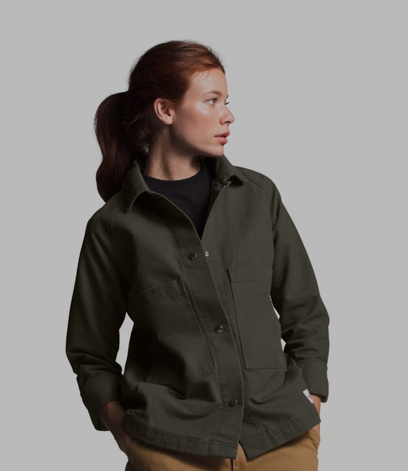 Here’s a perfect example: The North Face’s women's Berkely jacket. It’s a bold interpretation of the classic work shirt. Just jump up one size and you’re good to go.