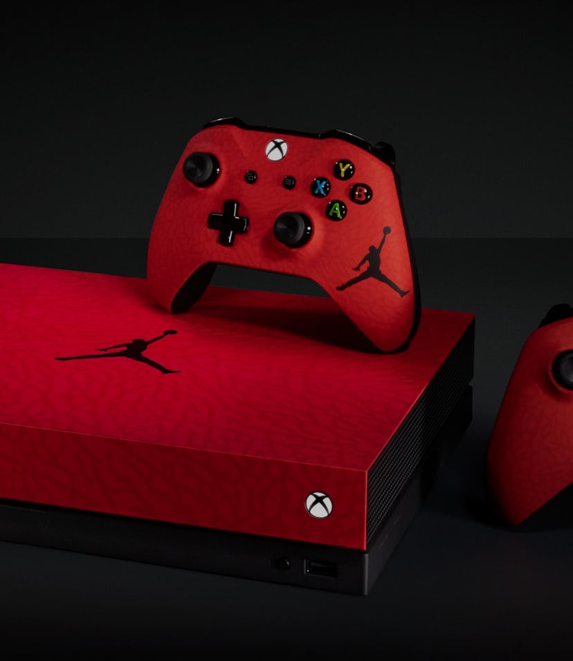 Xbox x Jordan. Again. — Whatever the collab may be, it wouldn't be the first time the two brands have worked together. In June 2018, around E3, Xbox worked with Jordan (owned by Nike) on a rare pair of Air Jordan 1 Mids, featuring a combination of green and black colors, shoelace tips that said "Xbox," a glow-in-the-dark sole, and a premium suede finish. And right before that, in February of the same year, Xbox created three limited-edition Air Jordan 3-inspired Xbox One X consoles, which were given away to people on Twitter.