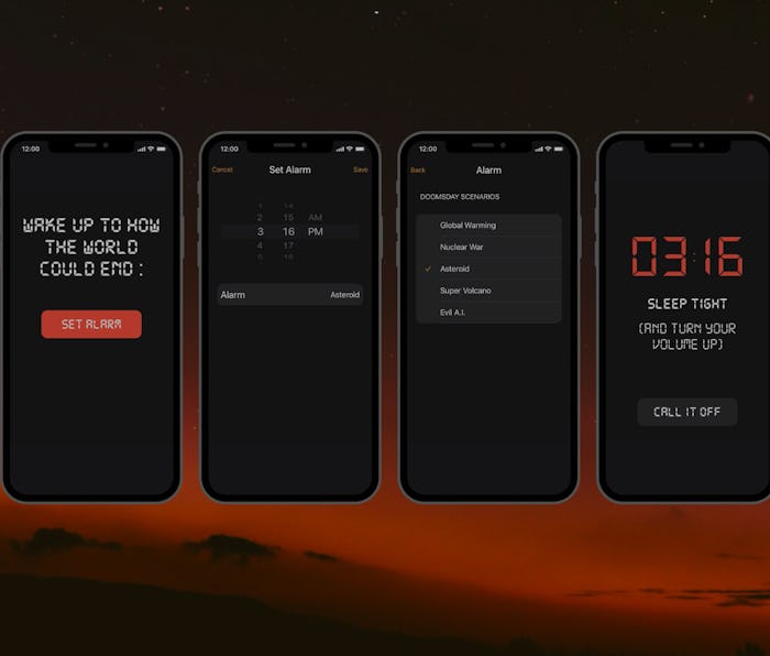 A customizable calamity — Co-created by Nass and Henningsen (the former of whom also had a hand in that anti-productivity Chrome extension), the alarm is pretty self-explanatory: Users pick from a number of different, genuinely plausible apocalyptic scenarios, opt for a designated wake up time, and then wait to be rousted by facts regarding each specific End Times situation. Current causes of mass extinction include a supervolcano, malignant artificial intelligence, asteroid strike, nuclear war, and, of course, good ol’ fashioned climate change.