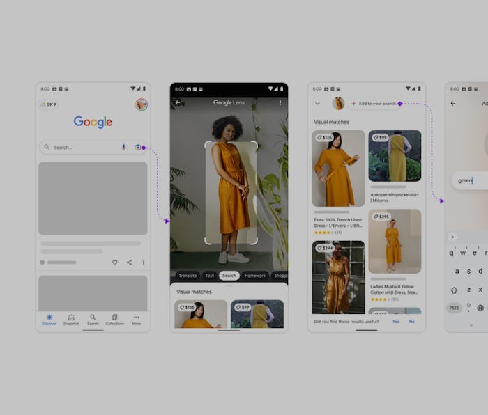 Adding context is as simple as snapping a picture in Lens (or uploading your own screenshot) and then tapping the “+” button to add text like “tutorial” or “green,” to narrow down your search. Google’s examples seem to be mostly oriented around shopping for now, but there’s the potential for far more as the company gets better at learning the searcher’s intent.