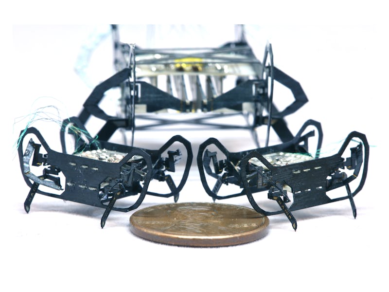 Tiny robots could also prove useful in tight spaces, like searching through rubble after earthquakes or other natural disasters, or helping with maintenance checks on vehicles, machinery, or anything else that isn't roomy enough — or is too hazardous for — humans' hands to explore. First, the researchers are going to have to figure out how to power the critters without wires though. But you can bet they're working on it.