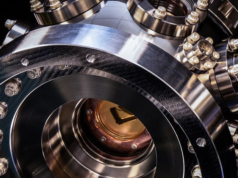 Honeywell’s quantum computer — The machine takes up quite a bit of real estate and looks like '80s popular culture imagined the future. An intense vacuum chamber — a basketball-sized stainless steel sphere — lets in laser light. Within the sphere, the vacuum has five times fewer particles than outer space. As is typical for quantum computers, it’s extremely cold — colder than the surface of Pluto, in fact, a frigid 10 degrees above absolute zero, or approximately negative 441 degrees Fahrenheit — thanks to liquid helium.